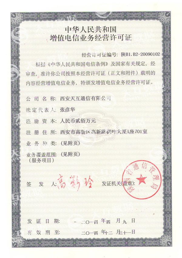 热烈庆贺:我司因特网数据中心(IDC)第一类增值电信业务经营许可证申办成功! 2014年4月,天互数据申办中华人民共和国工业和信息化部颁发的“因特网数据中心(IDC)增值电信业务”经营许可证获得成功,至此,天互数据具备了第一类增值电信业务数据中心(IDC)经营资质、第二类增值电 . . .