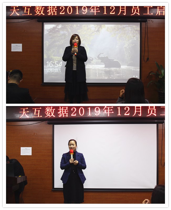 2019年的最后一个月里,我们也迎来了一位家人的转正,正式成为天互的一员,激情洋溢的分享让大家对这位可爱的家人留下了深刻的印象。随后进入到了营销中心团队士气展示环节并进行了12月的PK买码。