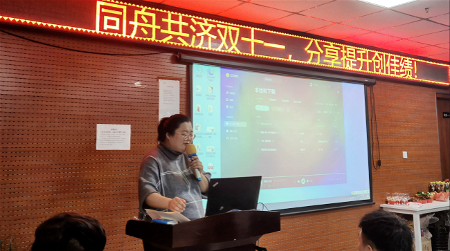活动由赵总主持,赵总为大家简单介绍了双11相关战况。今年的双11 大家都奋战在一线,没有丝毫的松懈,仅3天的筹备时间,成交额已突破百万大关,这是我们每一个销售努力辛苦挣来的成果,让我们为他们鼓掌!