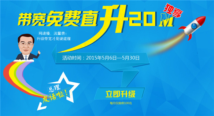 李克强总理在一季度经济形势座谈会上的讲话说出了不少人的心声,“现在很多人到什么地方先问‘有没有WiFi’,就是因为我们的流量费太高了!”网速慢,带宽贵让总理很忧心啊!作为西北地区最大的IDC服务品牌,近年来天互数据一直引领西北地区IDC行业的发展,随着个人宽带的升级和富媒体时代的飞速发展,100M共享的服务器带宽亟需突破瓶颈。今年5月份,天互数据顺应时代的发展趋势,推出带宽提速免费升级20M独享活动。
